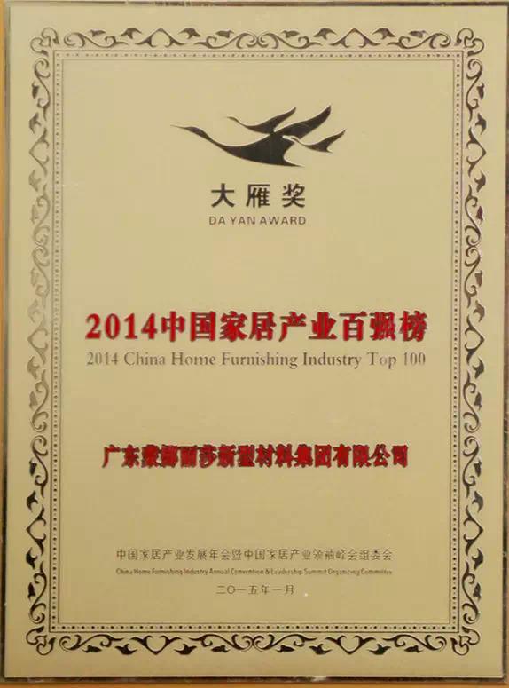 2015年1月16日,中國(guó)家居產(chǎn)業(yè)發(fā)展年會(huì)在國(guó)家會(huì)議中心圓滿落幕,被譽(yù)為中國(guó)家居行業(yè)“奧斯卡”地位的產(chǎn)業(yè)盛典“2014年度家居產(chǎn)業(yè)‘大雁獎(jiǎng)’”的頒獎(jiǎng)典禮也同期舉行。